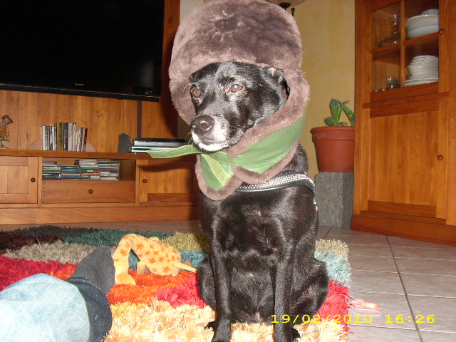 das war mal ne alte dienstmütze von meinem mann, du weisst ja, er ist bei den kleinen grünen männchen, die uns sehr ärgern können wenn die wollen!
