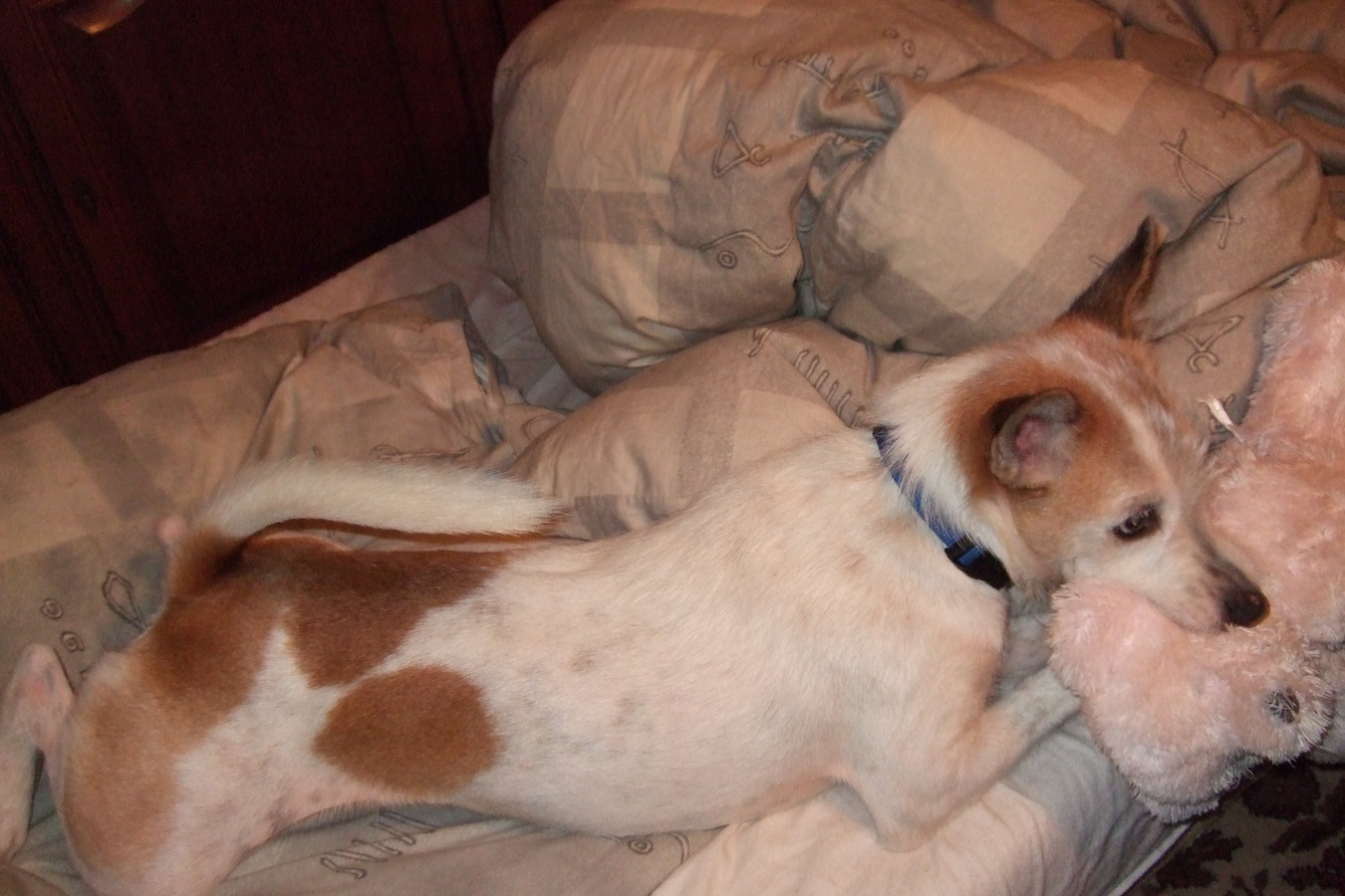 Re: Neue BilderchensToby ist nun komplett unter der Decke verschwunden da traute ich meinen Augen kaum.... Lissy laesst zu, das Toby sich an sie kuschelt...