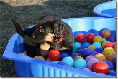 Dann bin ich noch schnell zum Fressnapf und hab ihr Welpenfutter gekauft und wieder nach Hause. Die kleine ist überhaupt nich mehr verstört, sondern tapst neugierig durch jedes Zimmer und spielt mit dem Schwanz (mit der Rute