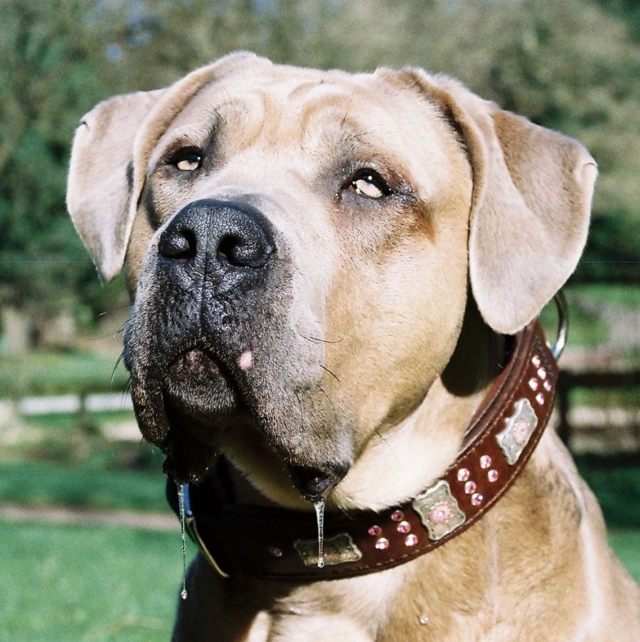 vorallem die sabberfäden am ersten foto sind spitze. und das halsband steht ihm ausgezeichnet.