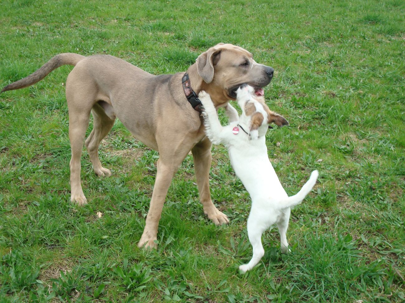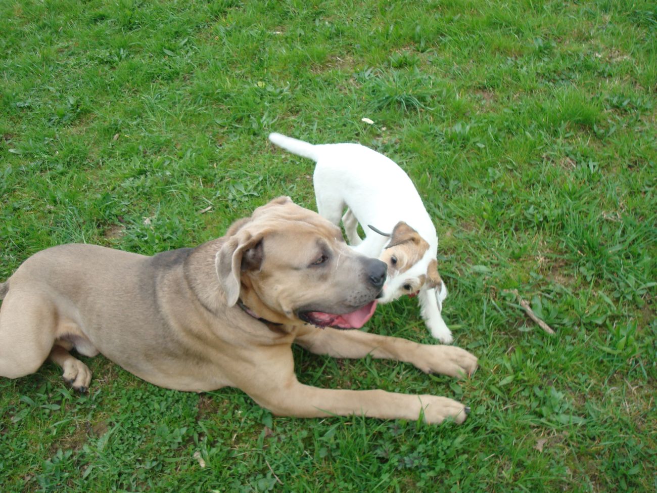 Und Lennox liebt es mit ihr zu spielen, weil eben beide Molosser und gleiche Spielweise....die beiden rennen weniger, dafür rempeln sie sich bis nichts mehr geht :P