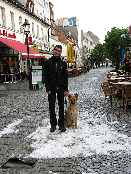 Neulich waren mein GF (Götterfreund) und ich in Berlin wandern. Die Dusche im Tiergarten hatte Kiara zum Fressen gern: Und so sah der Ende vom Tag dann aus: Hagel in Berlin im Mai!
