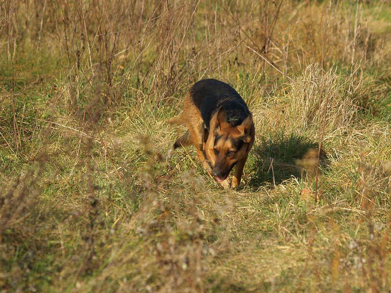 Ich hatte diesmal eine Werferin dabei um mal Abwechslung reinzubringen und damit ich in Ruhe knipsen kann. Sie wirft den Dummy von einem Feldrand aus, Mini darf los und als sie zu mir zurück kommt, ruft meine Freundin "oh, da läuft ein Hase".....