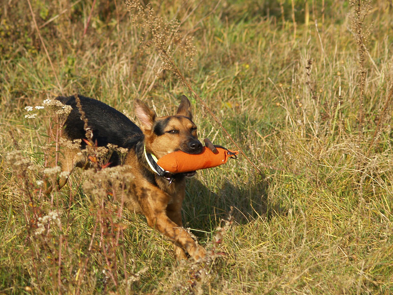 Den orangenen Dummy behalte ich, die anderen beiden tausche ich doch noch um...sie muss da schon "reinhauen" um ihn fest packen zu können, manchmal fällt er aus dem Maul und man merkt ihr richtig das "oh maaaaannnn...das gibts doch nicht..." an :roll: .