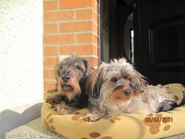 Hier sind sie - meine Beiden - in trauter Eintracht genießen sie die Sonne. - Ach wie isses schööööööön