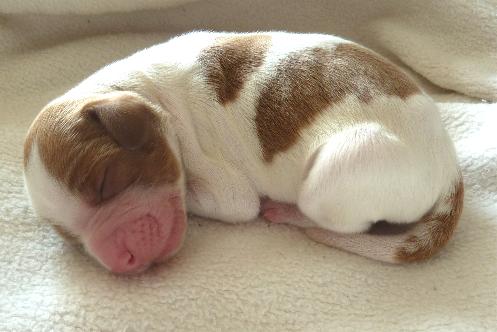 Ja, die Kleinen sind alle schön propper, die Mama ist aber auch eine verkappte Milchkuh. Jetzt nach vier Tagen ist die Milch richtig eingeschossen, die Welpen nehmen pro Tag bis zu 80 g zu.