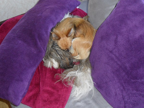 Re: Wie und wo schläft euer Hund??? (Hundebetten)Bei uns wird unterschiedlich geschlafen .........