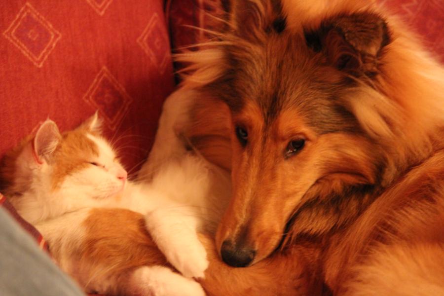 Anbei der von mir nach Goslar verkaufte Nestor mit "seiner" Katze, die schon hundeerfahren war, als er einzog.