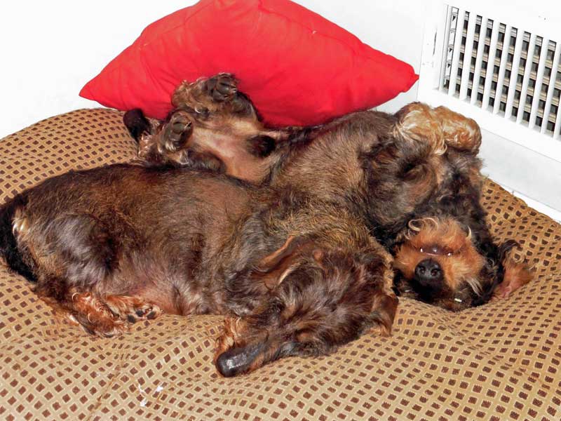 Wie und wo schläft euer Hund??? (Hundebetten)Re: Wie und wo schläft euer Hund??? (Hundebetten)Tessa hatte eine OP und wir schlafen zur Zeit auf Luma (ich) und Memory Foam Matratze (sie). Mit Krankenpflegerdackeln versteht sich.